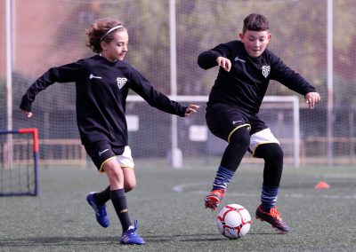 Nuestra metodología de tecnificación se apoya en dos pilares clave: toma de decisiones y técnica individual y colectiva. Entrenamos la visión de juego, la anticipación y la capacidad de reaccionar rápido en cada jugada, combinándolo con el dominio técnico de control, pase, conducción y finalización. El objetivo es formar futbolistas inteligentes, precisos y capaces de integrarse y destacar dentro del equipo.